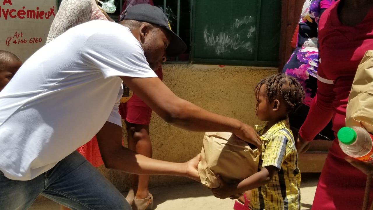 Header photo of the little boy receiving food from For Haiti with Love. (Photo courtesy of For Haiti with Love)