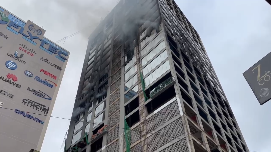 Mais de 100 integrantes do Corpo de Bombeiros Voluntários do Paraguai seguem trabalhando para conter o incêndio em um prédio no centro de Cidade do Leste, no Paraguai. O edifício de 25 andares, que fica a 650 metros de distância da Ponte da Amizade, corre o risco de desabar.