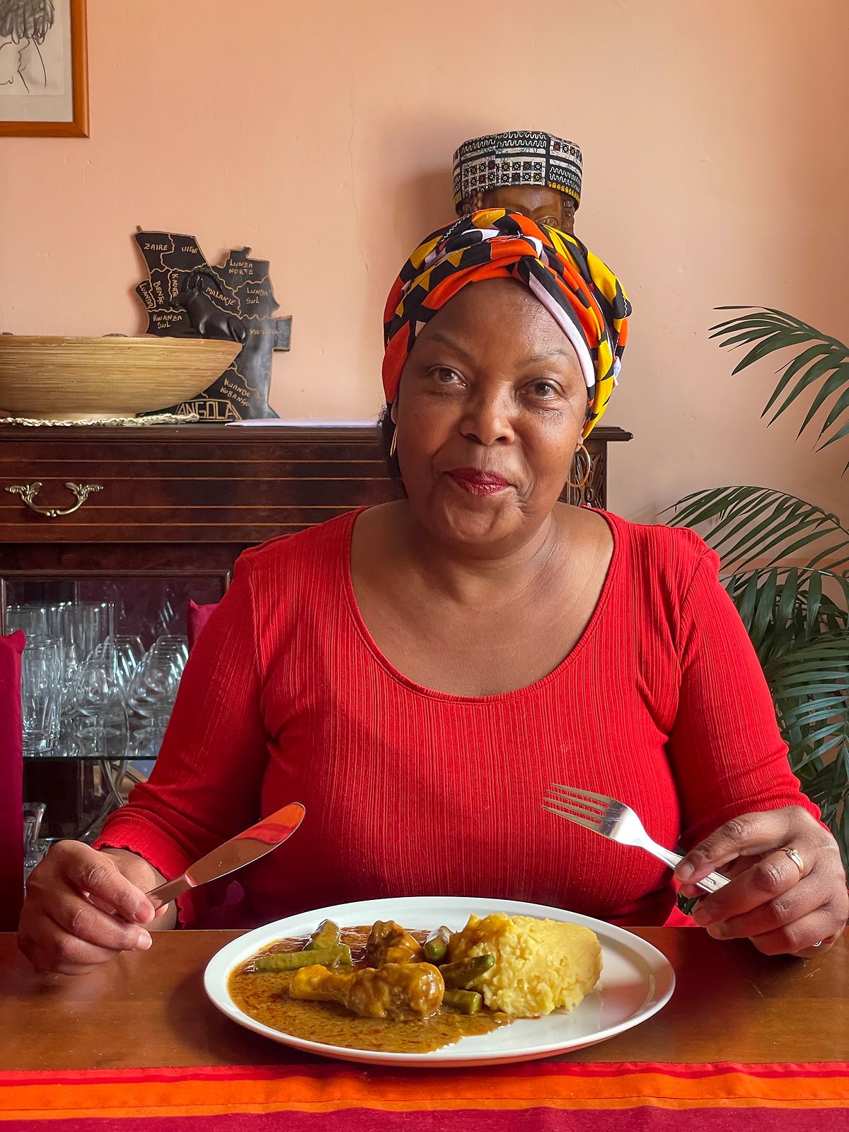 Luísa Teixeira é locutora do “Mwangolé”, um programa que a Rádio Latina dedica ao povo angolano. É também presidente da Omusa, uma organização de solidariedade com as mulheres do seu país que organiza encontros mensais. Quando se encontram, a moamba desbloqueia a conversa – sobretudo se a reunião for debaixo do seu teto. Juntam-se donas de casa de vários países, põem-se a falar das jornas em que o repasto se preparava no quintal, em que havia um prato para toda a gente, em que uma refeição servia de resistência a um país em convulsão. E agora continuam a usar a moamba como arma. Quando se abre a tampa do tacho, a única conversa que importa é a alegria.