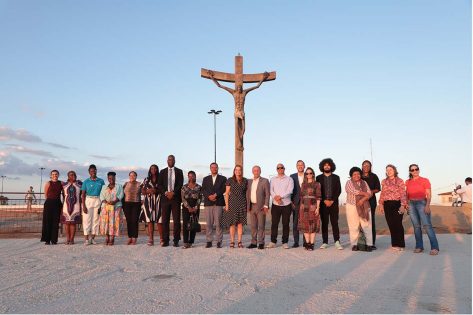 Aos pés da estátua criada por Mário Cravo, cujo entorno passa por um processo de requalificação, a delegação foi recebida pela prefeita Sheila Lemos, acompanhada por membros do Governo Municipal e pelos vereadores Hermínio Oliveira – atual presidente da Câmara – e Luís Carlos Dudé.