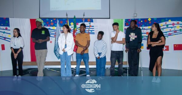Num auditório repleto e decorado com as bandeiras de mais de 20 países, primorosamente feitas pelo professor António Rodrigues, estiveram presentes todos os alunos da secundária de Monserrate que vieram do estrangeiro – e eram mais 80 -, cinco turmas do ensino secundário e ainda uma turma da escola Pedro Barbosa.