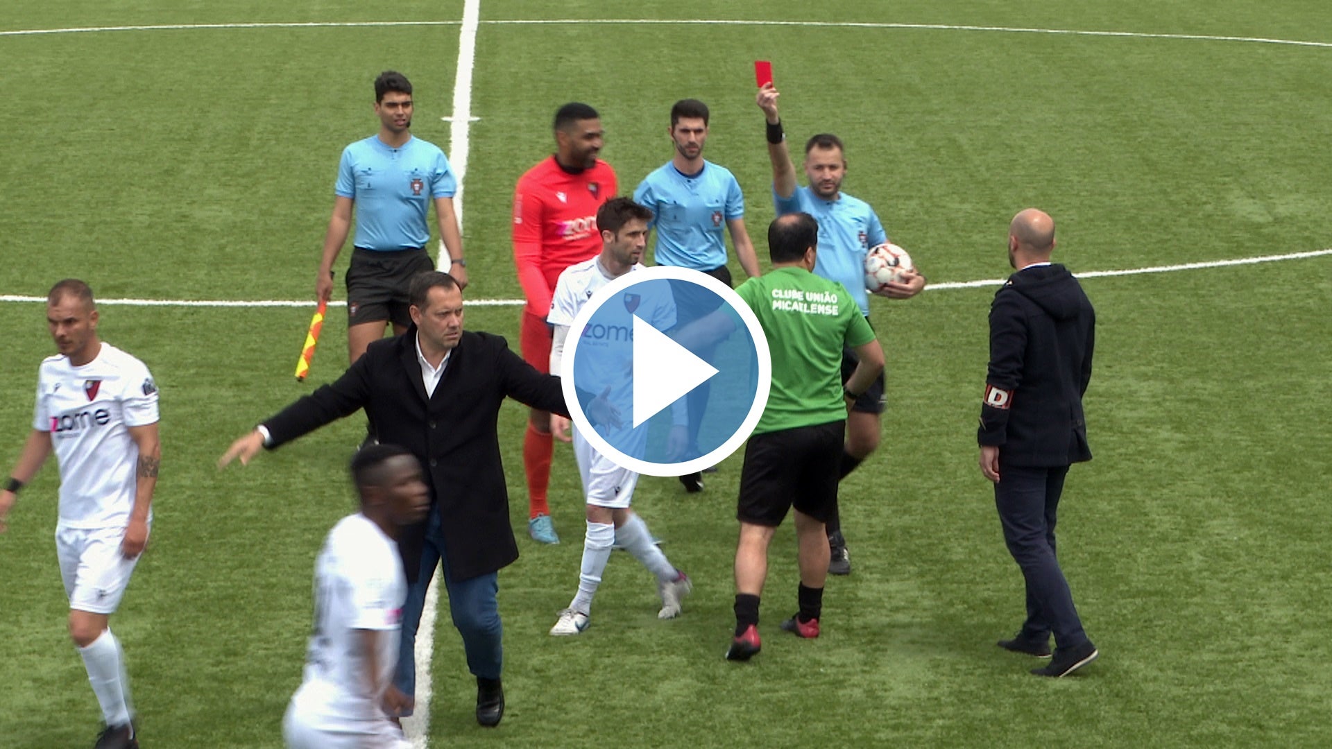 Vasco Almeida exibiu muitos amarelos e expulsou nos dois bancos na primeira parte que por essa razão perdeu qualidade. Aos 41 minutos o juiz da partida mostrou vermelho direto a Miguel Rego, reduzindo o união a 10 unidades.