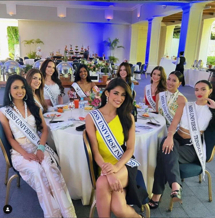 Đại diện các nước Paraguay, Thái Lan, Bolivia, Jamaica, Brazil, Ấn Độ, Chi Lê, Nga… dự thi Miss Universe 2023 đã có mặt tại khách sạn và chụp hình chung với nhau để chào khán giả.