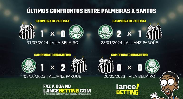 O clássico entre Santos e Palmeiras já aconteceu 311 vezes, até o momento, e o time da capital paulista venceu mais jogos. Foram 135 vitórias do Palmeiras, 97 do Santos e outros 79 empates.
