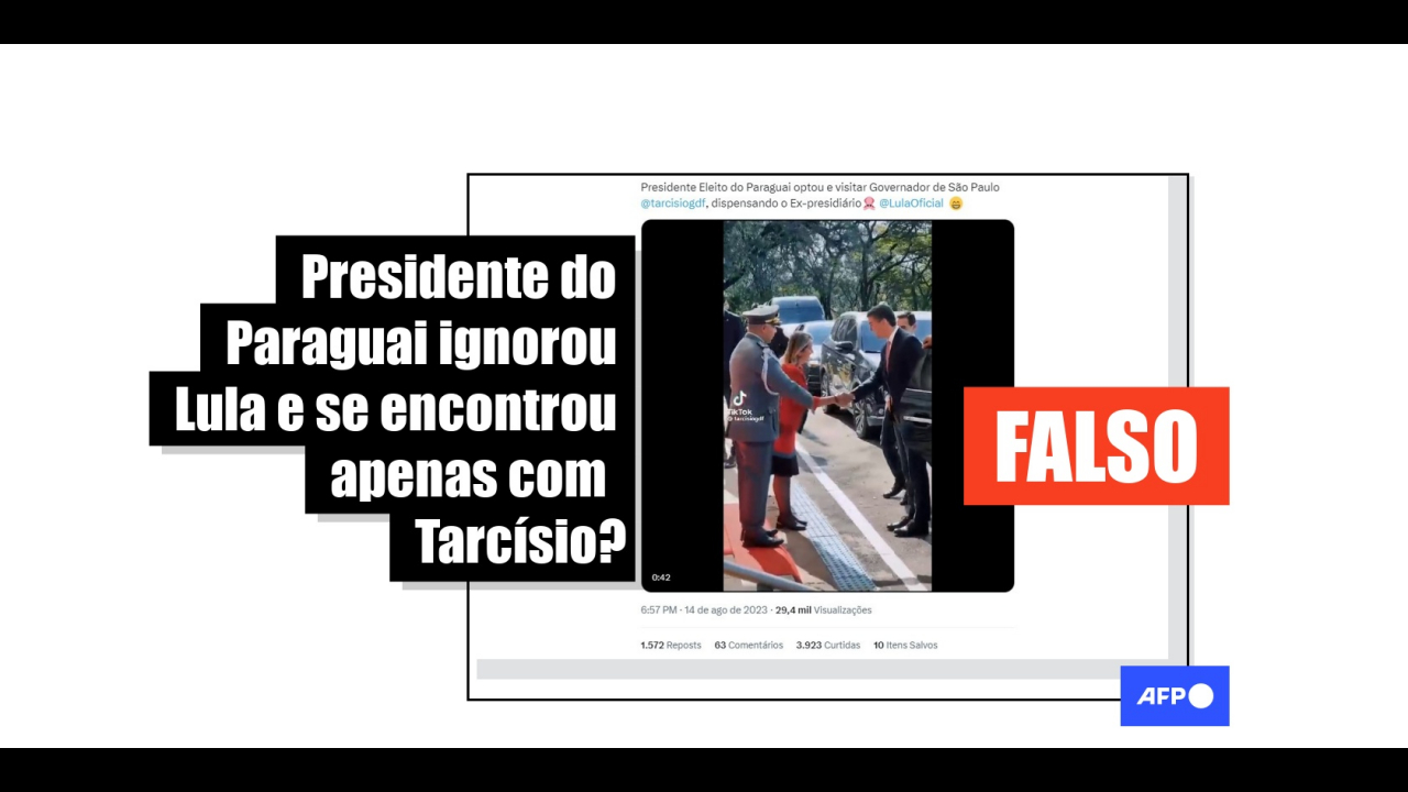No final de julho de 2023, o presidente do Paraguai, Santiago Peña, se reuniu com o governador de São Paulo, Tarcísio de Freitas (Republicanos), e com o presidente Luiz Inácio Lula da Silva (PT) no Brasil. Porém, publicações compartilhadas milhares de vezes nas redes sociais desde o último dia 14 de agosto alegam que Peña ignorou Lula e se encontrou apenas com Tarcísio. O encontro entre Lula e Peña foi registrado pela imprensa e em postagens dos mandatários. Antes disso, os dois já haviam se reunido em maio de 2023, também no Brasil.