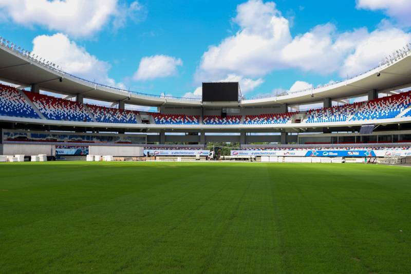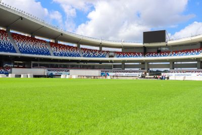 Depois dos últimos eventos musicais que tiveram como palco o Novo Mangueirão, a malha sintética que protege o gramado, denominada “easyfloor”, foi retirada do amplo espaço e agora a cobertura verde segue com o cronograma diário de cuidados.